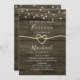 Invite guests in style with this elegant, modern rustic wedding reception invitation. Featuring a barn wood backdrop, string lights, a chic gold rope heart, and simple calligraphy script, it perfectly blends rustic charm with romantic sophistication.