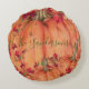 Rustic Wood Autumn Orange Pumpkins Fall Leaves round pillow. Custom Family Name
