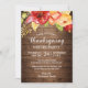 Rustic Wood Autumn Red Floral Thanksgiving Dinner Invitation