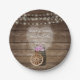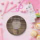 Rustic Wood Barrel Wedding and Pink Flowers Paper Plate