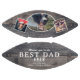 Rustic Wood Best Dad Ever Father 3 Photo Collage Football. 3 photos in oval and square frames - add 3 photos. The text is a trendy white typography on a rustic dark wood texture. You can change any text on the football or erase it. A perfect gift and a sweet keepsake for a dad.