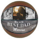 Rustic Wood Best Dad Name Keepsake 3 Photo Basketball. Dark wood background. Add your photos, name and year. You can change any text on the basketball. This custom and personalised basketball is a perfect gift and a keepsake for a dad or a new dad on Father`s Day.