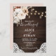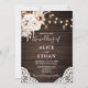 Introducing our enchanting Rustic Wedding Invitation, the perfect choice for your fall wedding celebration. The design features a beautifully illustrated rustic wood backdrop, evoking the charm and warmth of an autumnal setting. At the top of the card, a stunning watercolor boho arrangement of flowers in soothing neutral colours is gracefully presented, illuminated by the gentle glow of string lights, adding a touch of magic and romance. The invitation elegantly combines text in a classic serif font with a modern script, highlighting the heading "The Wedding of" in a captivating script font. This invitation is an ideal selection for couples looking to capture the essence of a fall wedding, merging rustic allure with modern sophistication. Set the stage for your special day with an invitation that not only announces your event but also reflects the beauty and unique spirit of your love story.