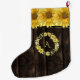 Rustic Wood Bright Yellow Sunflower Monogram Large Christmas Stocking . The design has a rustic wood background with sunflowers and a sunflower wreath and space to add your Monogram . Customise the stocking by changing the monogram. For any further customisation , feel free to contact me at mypaperlove2021@gmail.com