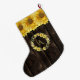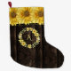 Rustic Wood Bright Yellow Sunflower Monogram Large Christmas Stocking