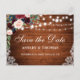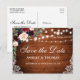 Rustic Wood String Lights Lace Watercolor Burgundy Marsala Blue Floral Save the Date Postcard - Printed Back