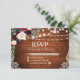 Rustic Wedding Wood String Lights Lace Watercolor Burgundy Marsala Blue Floral RSVP Card