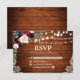 Rustic Wood Burgundy Blue Floral Wedding RSVP Card