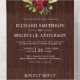 Rustic Wood Burgundy Floral Deer Antlers Wedding All In One Invitation