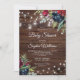 Rustic Wood Burgundy Floral Lights Baby Shower Invitation
