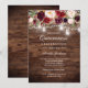 Rustic Wood Burgundy Floral Lights Quinceanera Invitation