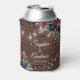 Rustic Wood Burgundy Floral Lights Wedding Can Cooler