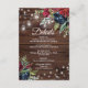 Rustic Wood Burgundy Floral Lights Wedding Details Enclosure Card