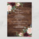 Rustic Wood Burgundy Red Wine Flowers Wedding Menu