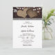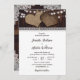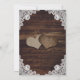 This romantic rustic wedding invitation featuring two burlap hearts against a barn wood background adorned with white floral lace and string lights is perfect for inviting your guests to your rustic country/barn wedding party.
