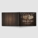 Elegant rustic country wedding guest book featuring two burlap hearts and string lights on a rustic wood background. Perfect guest book for your rustic country, farm, backyard or barn wedding party. Matching items available.
