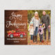 Rustic Wood Fun Calligraphy Script Watercolor Vintage Red Truck with Pumpkins and Autumn Leaves - Happy Thanksgiving Family Photo Postcard