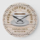 Novelty kitchen clock with a coffee theme. Personalise with name. A coffee cup illustration with the fresh coffee served typography on wood background adds a modern and rustic look to your kitchen decor.
