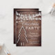 Rustic wood string lights Christmas tree Christmas party invitation design.