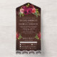 Rustic Wood Country Lace Burgundy Floral Wedding All In One Invitation