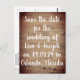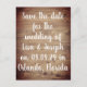 This country-style save the date card features your save the date details set in rustic script typography on a vintage wood panels background. The reverse has additional save the date details, including your wedding website, with your return address and space for your recipient's address.