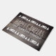 Cute, personalised rustic RV camping decor doormat for rvers, retired couples, and campers- Distressed, rustic wood look doormat reads 'Happy Campers' in handwritten looking letters with a text template for adding family name below in whimsical lettering. With a cute, white cartoon border at the top and bottom of motorhome RVs and pine trees. Against a background of darkened, rustic, distressed wood boards. Great couples retirement gift, too. Would look right at home in front of an RV or cosy log cabin.
