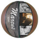 Rustic Wood Dad Name Keepsake 3 Photo Collage Basketball. Dark wood background. Add your photos, name and year. You can change any text on the basketball. This custom and personalised basketball is a perfect gift and a keepsake for a dad or a new dad on Father`s Day, birthday or Christmas.