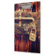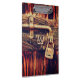 Rustic, dark stained wood door embellished with an antique, brass lock and bolt. Rustic, richly coloured and handsome. Personalise if you wish.