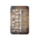Rustic RV camping decor gift for rvers, adventure travelers, wanderers, retired couples, and campers- Personalised, distressed wood look bathmat reads 'Life's a Journey Enjoy the Ride', in handwritten and stamped look, white letters. With a cute, white border in between of vintage motorhome RV campers and pine trees. Against a brown background of rustic, distressed barn wood planks. Fun retirement gift for mum and dad. Would be right at home in an RV bathroom. We have coordinating 'Enjoy the Ride' rustic decor, as well as lots of camping theme decor in our Zazzle.com/angela65 shop.