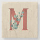 Rustic Wood & Eucalyptus Letter M Stone Coaster