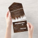 Capture the cosy charm of a winter wedding with this all-in-one rustic wood all in one wedding invitation, perfect for couples planning a budget-friendly celebration. Featuring a rich, dark wood background with delicate white pine tree silhouettes, this affordable design combines woodland charm with refined script typography for a timeless look. With an integrated RSVP card, meal choices, and wedding details, this seal-and-send invitation (also known as a folded wedding invitation , all-inclusive wedding invite, trifold wedding invitation, 3 in 1 wedding invitations) offers a convenient, affordable solution.