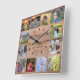 Rustic wood Family photo collage monogram name Square Wall Clock