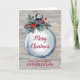 Merry Christmas for father in law card with rustic country chalkboard wood pattern and watercolor christmas ornament with winter foliage and holly.