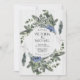 Elegant and Rustic Moody white barn wood with watercolor pine branches, juniper berries, eucalyptus, soft snowflakes and the initials of the couple Wedding invitations. Colours of black, white, blue and shades of green. Great for a Rustic, Woodland, Winter, Fall, Boho, Forest or outdoor wedding!
