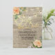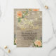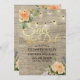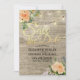 Save The Date Wedding Invitation Card Templates - Faux Gold Foil Script with Peach White Roses Floral and String Lights on Rustic Wood Background.