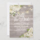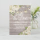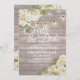 Save The Date Wedding Invitation Card Templates - Elegant Script Lettering with White Roses Floral and String Lights on Rustic Wood Background.