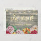 Rustic Wood Floral String Lights Save The Date Announcement Postcard