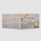 Wedding Guestbook Templates - Elegant Script with Peach White Roses Floral and String Lights on Rustic Wood Background.