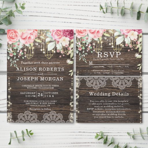 Rustic Wood Floral String lights Wedding Rehearsal Invitation