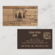 Rustic wood plank and scenic wilderness forest trees business card design personalised with your custom text and QR code. Ideal for cabin, lake house, rustic mountain lodge and vacation home rental property owner or business. ASSISTANCE: For help with design modification or personalisation, colour change, resizing, transferring the design to another product or if you would like coordinating items, contact the designer BEFORE ORDERING via the Zazzle Chat MESSAGE tab below or email makeitaboutyoustore@gmail.com.