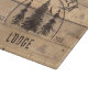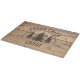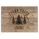 Personalised cutting board featuring a rustic brown wood plank and scenic forest trees design with your custom text. Ideal for a family cabin, lake house, rustic lodge or nature retreat and vacation home rental property. ASSISTANCE: For help with design modification or personalisation, colour change, resizing, transferring the design to another product or if you would like coordinating items, contact the designer BEFORE ORDERING via the Zazzle Chat MESSAGE tab or email makeitaboutyoustore@gmail.com.