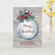 Merry Christmas for friend and her family card with rustic watercolor christmas ornament and holly berries and vintage wood pattern.