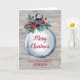 Merry Christmas for godson card with rustic country chalkboard wood pattern and watercolor christmas ornament with winter foliage and holly.