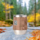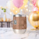 Showcase your brand in style with this customizable insulated wine tumbler featuring your business logo, website, and QR code on a rustic wood grain background. A practical and professional choice for company events, client gifts, or team swag with a rustic touch.
