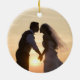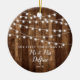 Rustic Wood Grain Fairy Lights Newlywed Mr & Mrs Ceramic Ornament with beautiful mini string lights accent and pretty script font. The perfect first Christmas married gifts for newlywed traditions. Personalise with names by clicking "Customise It"!