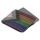 Rustic and dark, this neoprene laptop sleeve is stunning and represents all the colours of the Rainbow Pride flag combined with the Trans Pride Flag and the colours black and brown representing queer people of colour. With alternating stripes in a faux wood grain pattern, this Progress Pride Flag honours inclusion and understanding. This would be a nice gift for an ally, friend or member of the Queer Community. This is available in three sizes: 10", 13" and 15".
