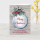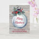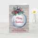 Merry Christmas for granddaughter card with rustic country chalkboard wood pattern and watercolor christmas ornament with winter foliage and holly.