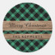 Rustic Wood Green Black Buffalo Plaid Christmas Classic Round Sticker