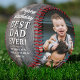Rustic Wood Happy Birthday Best Dad Photo Collage Baseball. The text is a trendy white typography on a dark rustic wood texture. Add 2 photos and names. You can change any text on the baseball or erase it. Great gift and a sweet keepsake for a dad who loves baseball and sport.