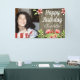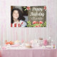 Rustic Wood Happy Birthday Photo Pink Flowers Banner